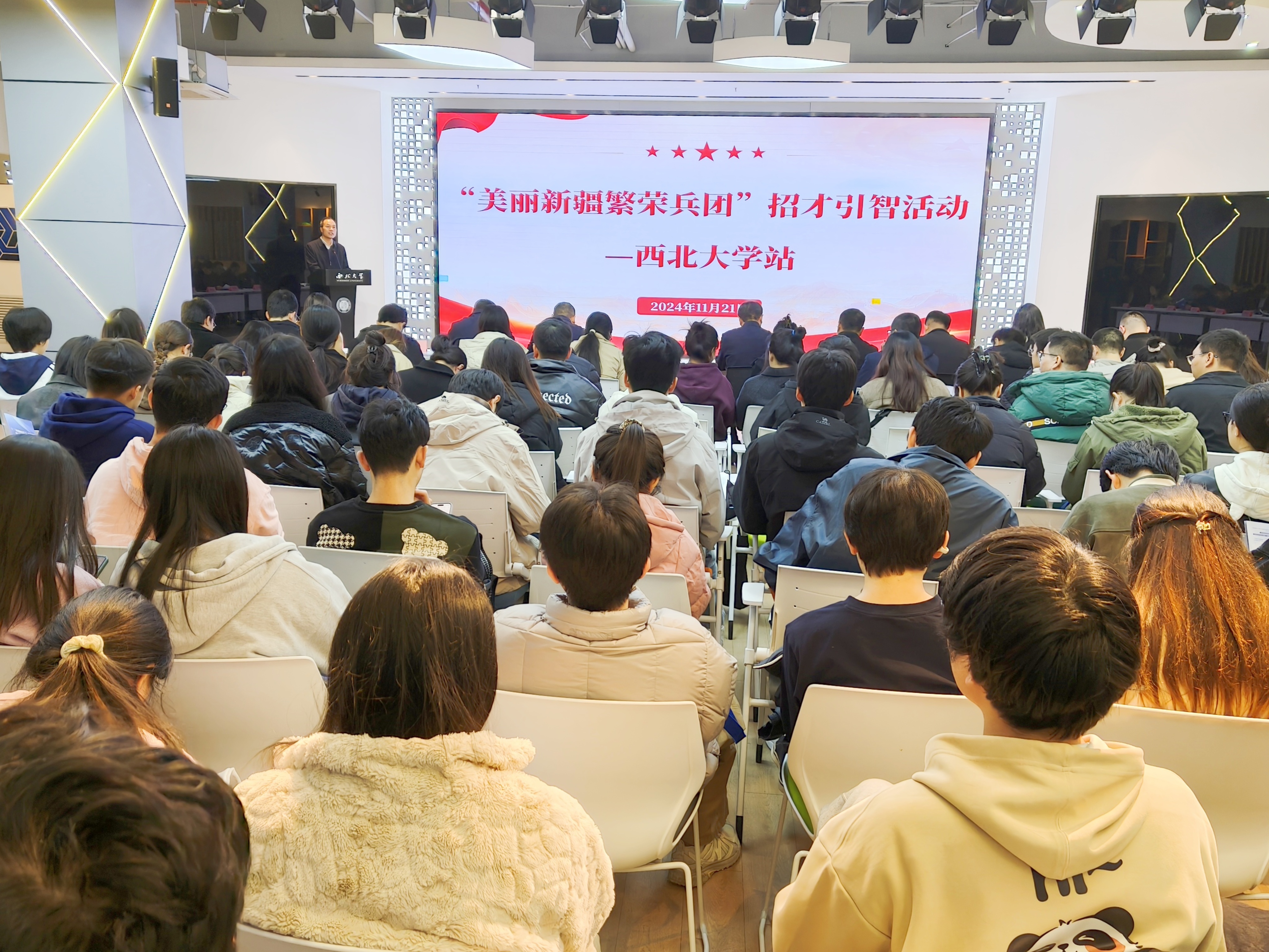 11月21日,2024年“美丽新疆 繁荣兵团”新疆生产建设兵团—AC米兰中国官网招才引智专场推介会在AC米兰官网举办。兵团党委组织部副部长、公务员局局长李学明,兵团相关单位负责人,校党委副书记吕建荣,就创中心负责人,文学院、经管学院、法学院、城环学院、信息学院学生工作负责人参加会议,100余名毕业生代表参加了现场活动。