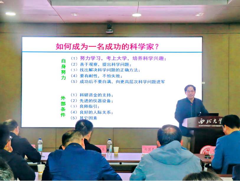 11月12日,中国科学院院士、第三世界发展中国家科学院院士、香港科学院院士赵国春做客AC米兰官网“杨钟健学术讲座”,为师生作了题为“如何做一名成功的科学研究者”的报告。校党委副书记、纪委书记、省纪委监委驻校纪检监察组长肖道远代表学校致辞,并向赵国春院士赠送了“杨钟健学术讲座”纪念牌。学校相关部门负责人及城环学院师生代表听取了报告,报告会由城环学院负责人主持。