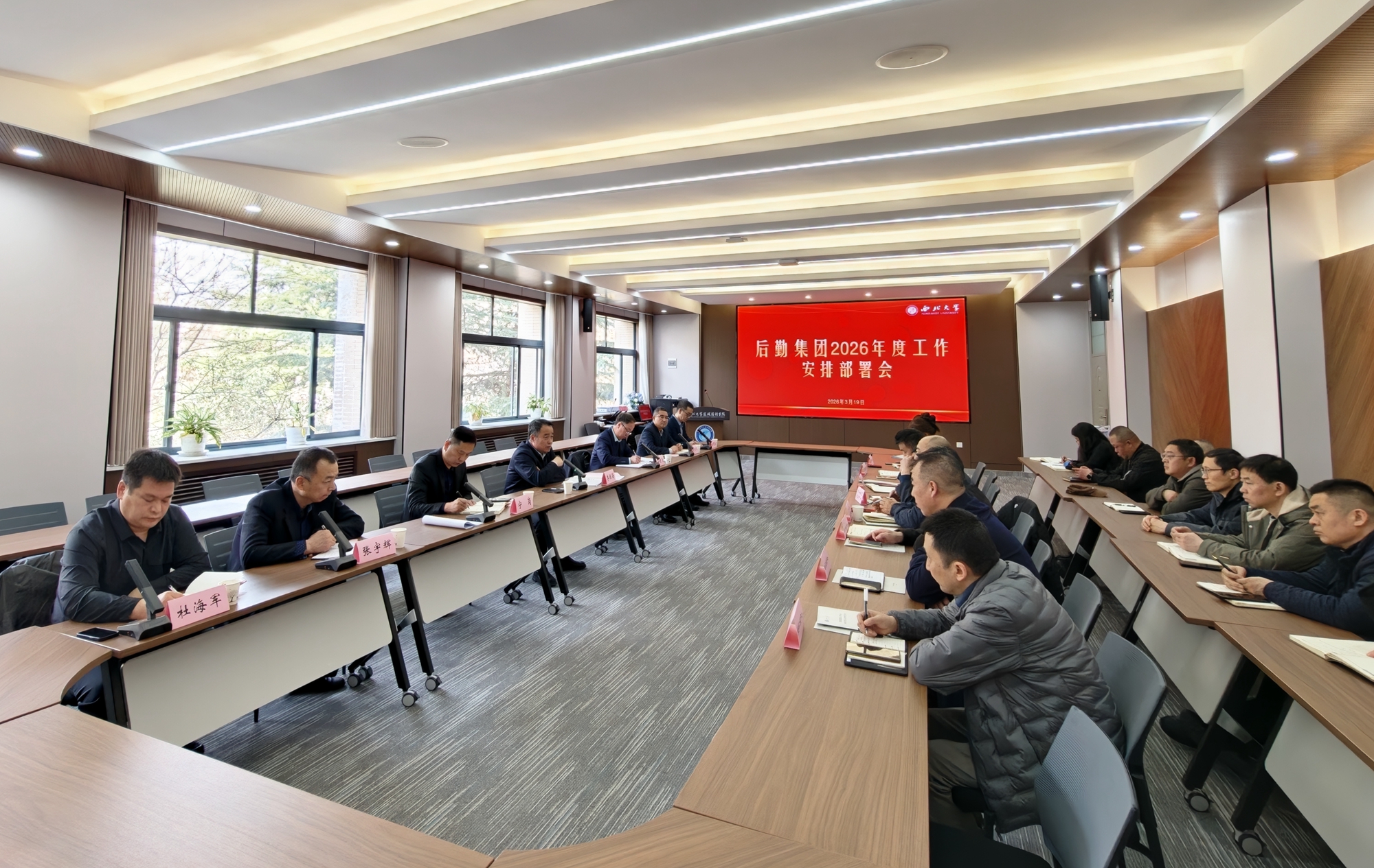 3月19日下午,学校在长安校区召开2026年度后勤工作安排部署会。校党委常委、副校长李振海出席会议并讲话,后勤集团副科级以上中层干部、职工代表参加会议。