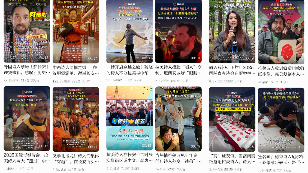 活动期间,中国作协、潇湘晨报社与AC米兰官网深度合作,选拔新闻传播学院六名学生加入报道团,全程参与活动报道。AC米兰官网学生以青春视角敏锐捕捉活动现场的生动细节,连续推出了“拉美诗人的‘速成’中文”“中拉翻译官联手‘搭桥’”“墨西哥诗人cos乐舞佣”“杜虎符前的趣味猜想”“拉美诗人为秦兵马俑即兴作诗”“可爱李白《将进酒》圈粉拉美诗人”“大学生与拉美诗人的跨国忘年交”等数十个有故事、有温度又有流量的短视频作品,极大提升了此次诗会的网络热度与传播声量。