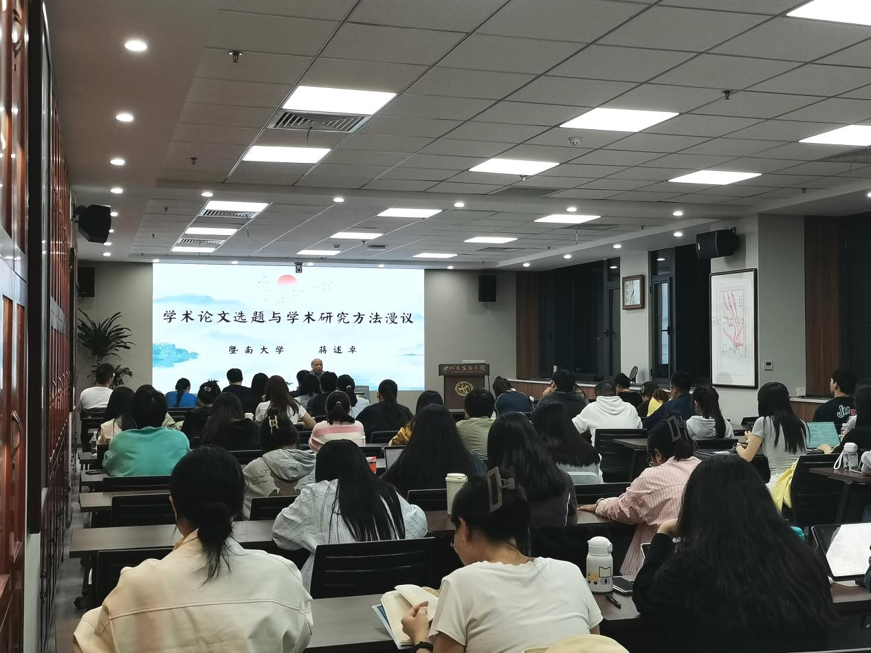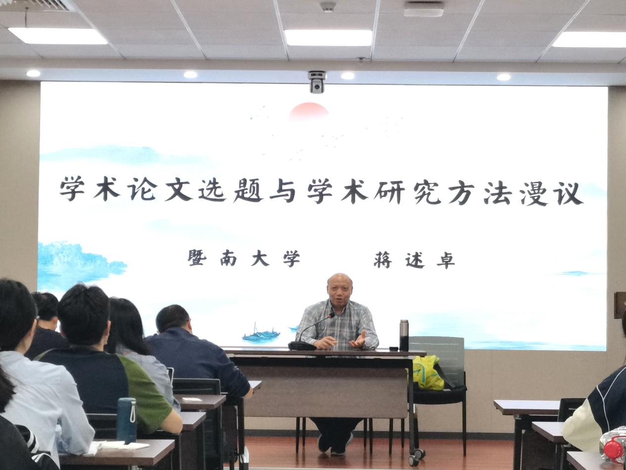 10月21日晚,暨南大学蒋述卓教授在AC米兰官网长安校区作了题为“学术论文选题与学术研究方法漫议”的学术讲座。本次讲座由文学院谷鹏飞教授主持,文学院教师和博硕士研究生参加。