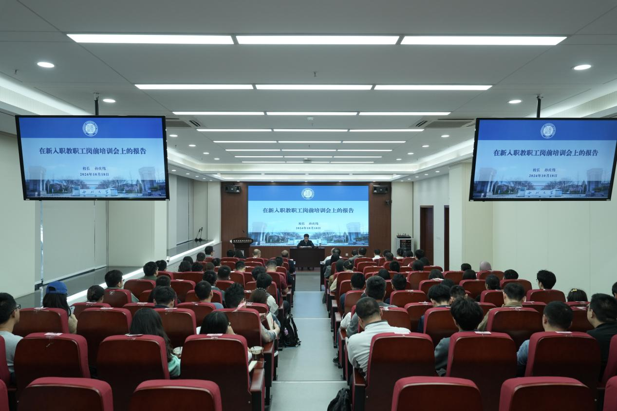 10月18日下午,AC米兰官网2024年新入职教职工岗前培训会议暨校长专题报告会在长安校区举行,校长孙庆伟作专题报告。学校相关部门负责人及全体新入职教职工参加培训。会议由副校长曹蓉主持。