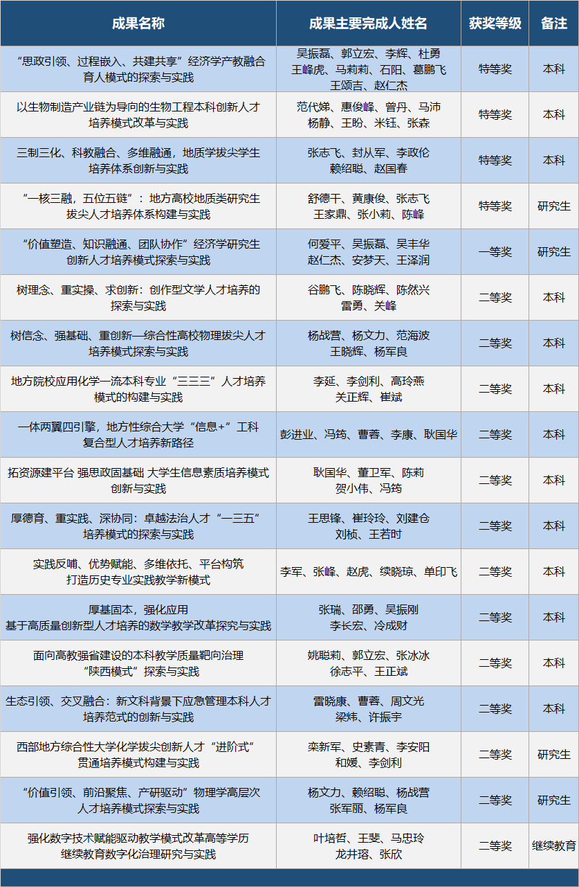 近日,陕西省人民政府公布了2023年陕西省高等教育教学成果奖评选结果,AC米兰官网共18项成果获奖,其中特等奖4项,一等奖1项,二等奖13项,获奖数量在全省高校中位居前3位。