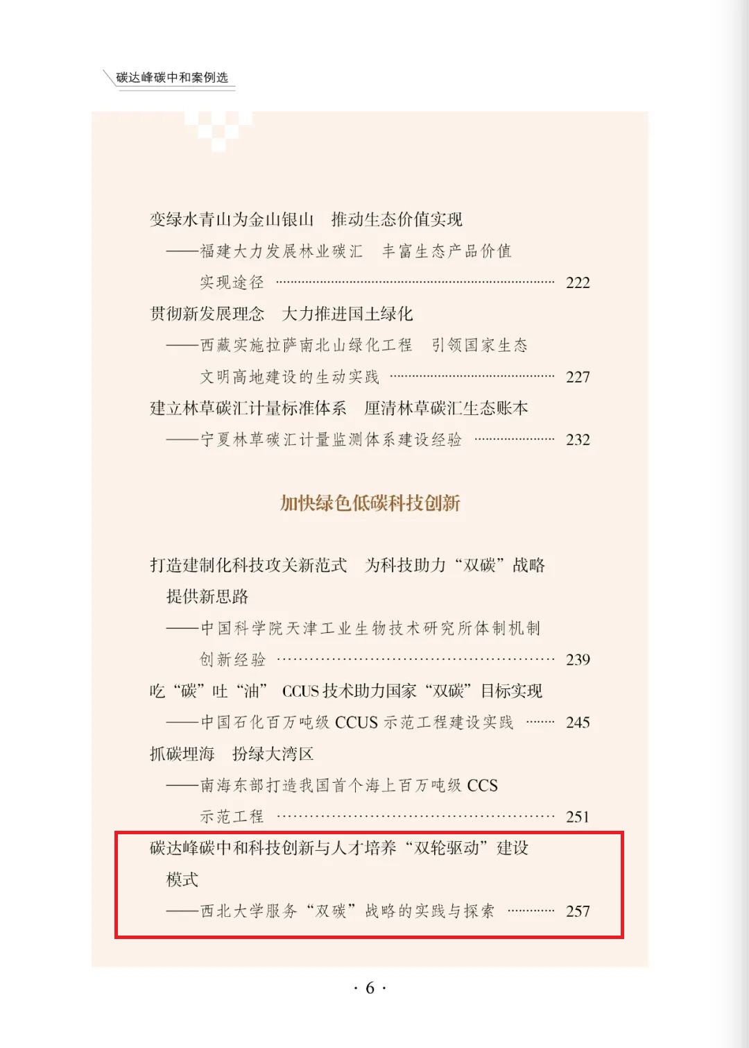 日前,国家发展和改革委员会资源节约和环境保护司、全国干部培训教材编审指导委员会办公室组织编写的《碳达峰碳中和案例选》出版,AC米兰官网“碳达峰碳中和科技创新与人才培养‘双轮驱动’模式——AC米兰中国官网服务‘双碳’战略的实践与探索”入选,为陕西省唯一入选案例。