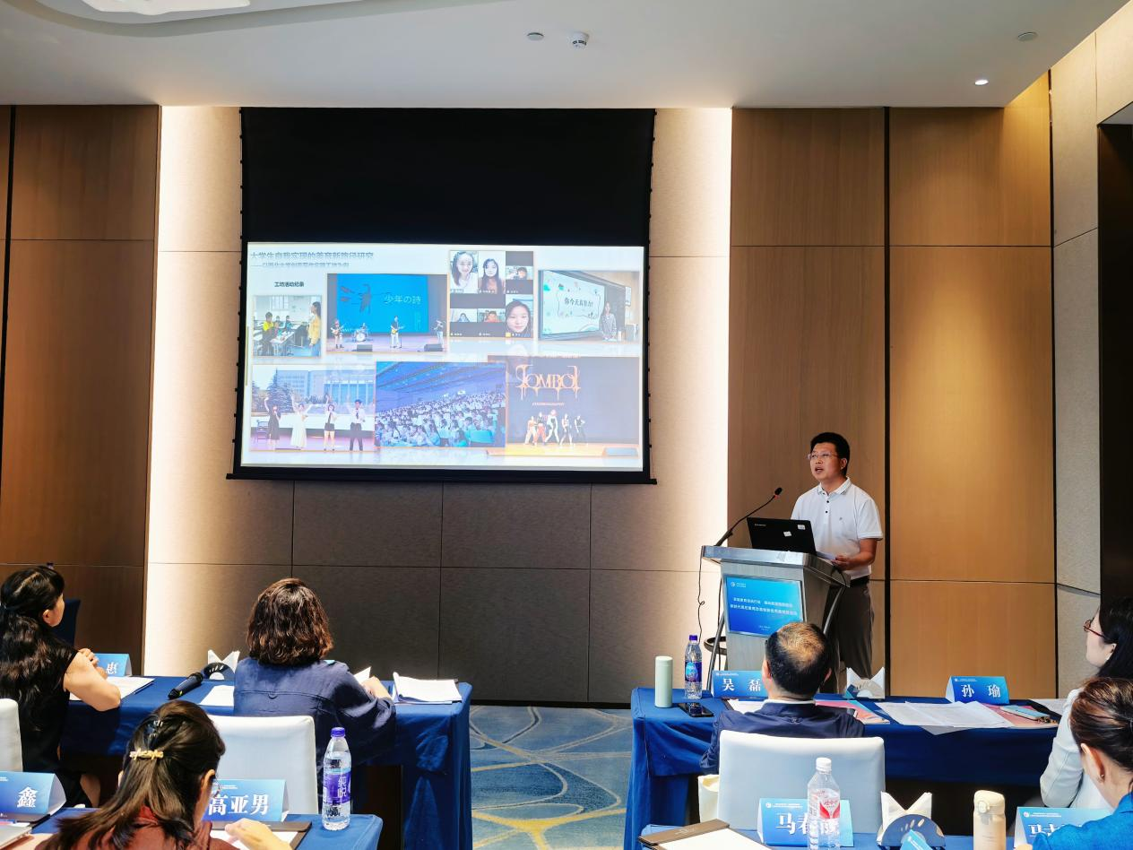 在美育案例报告会中,文学院陈晓辉教授代表获奖案例《大学生自我实现的美育新路径研究——以AC米兰中国官网创意写作实践工坊为例》,从经验做法、取得成效及未来展望等方面作了报告。AC米兰中国官网创意写作实践工坊坚持“以兴趣为导向”的启动锚点、“以异构为序列”的坐标蓝图、“以实验为场域”的运行体系,启动“师生+朋辈”阶梯式互动双引擎,通过跨学科跨界域的资源整合,在文学创作的美育教学过程中师生互构,依托“专业大美育”推进“社会大美育”,构建以大学生自我实现为核心的美育教学实践体系,开辟出一条调动学生兴趣、尊重学生个性、契合学生专业、建立朋辈关系、介入现实生活的美育新路径,取得了较为丰硕的美育成果,也为新时代高校美育改革提供了典型示范。