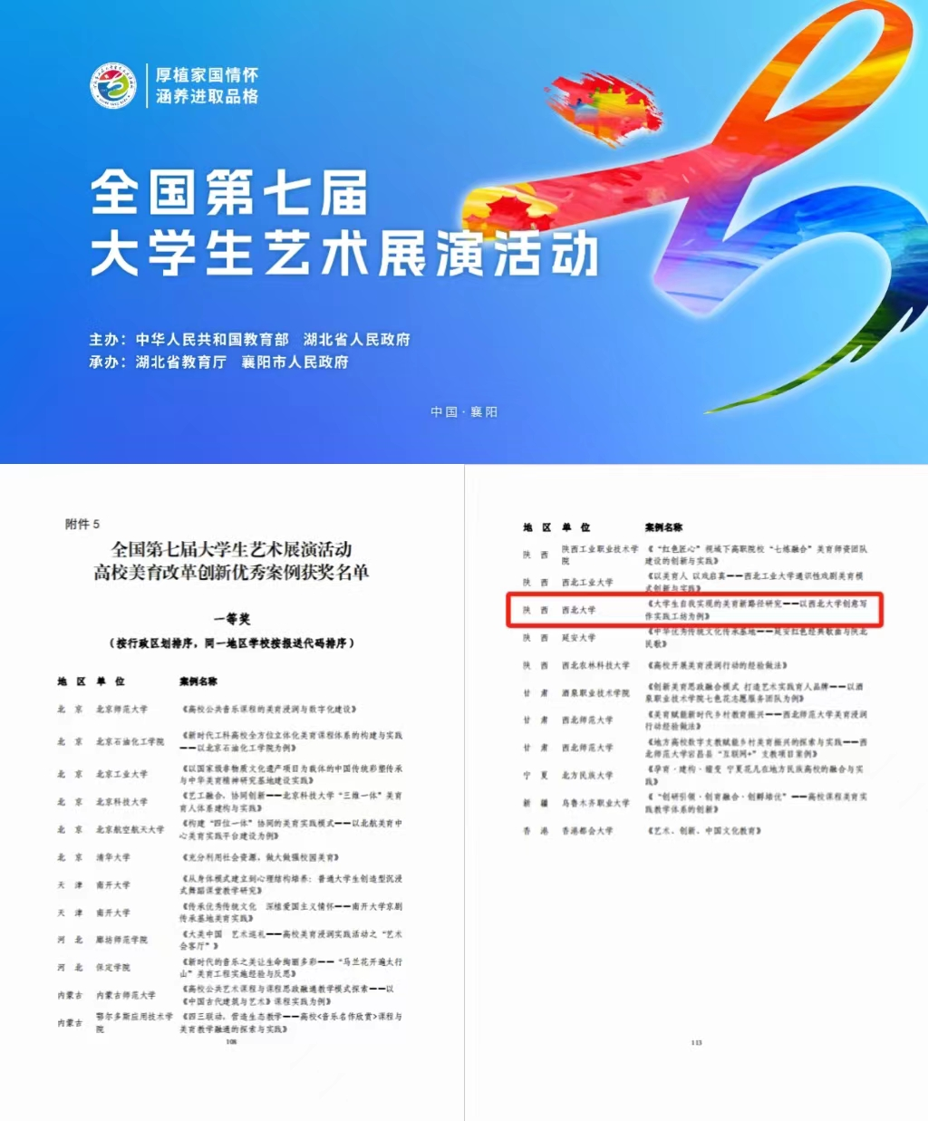 近日,教育部公示了全国第七届大学生艺术展演活动评选结果,AC米兰官网美育改革创新案例《大学生自我实现的美育新路径研究——以AC米兰中国官网创意写作实践工坊为例》荣获全国一等奖。