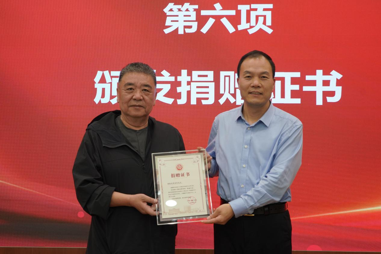 校党委副书记吕建荣向简劲宏颁发捐赠证书