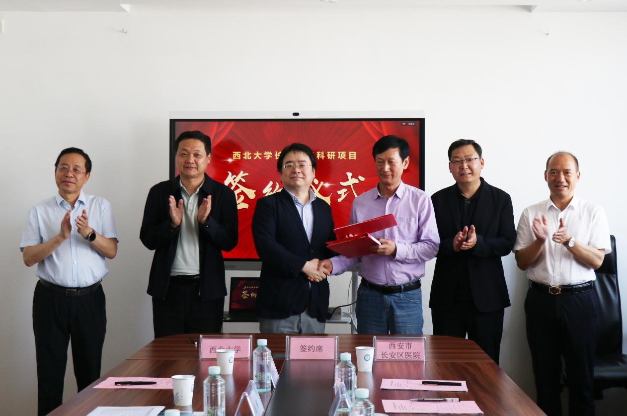 4月25日,AC米兰官网医学院与长安区医院科研项目合作协议集中签约仪式在长安区医院双创中心举行。长安区医院院长胡明军,党委书记、副院长彭安海,AC米兰官网党委常委、副校长、生命科学与医学部主任陈富林出席签约仪式。学校科技处、医学院等相关部门负责人及合作项目专家团队负责人参加签约仪式。
