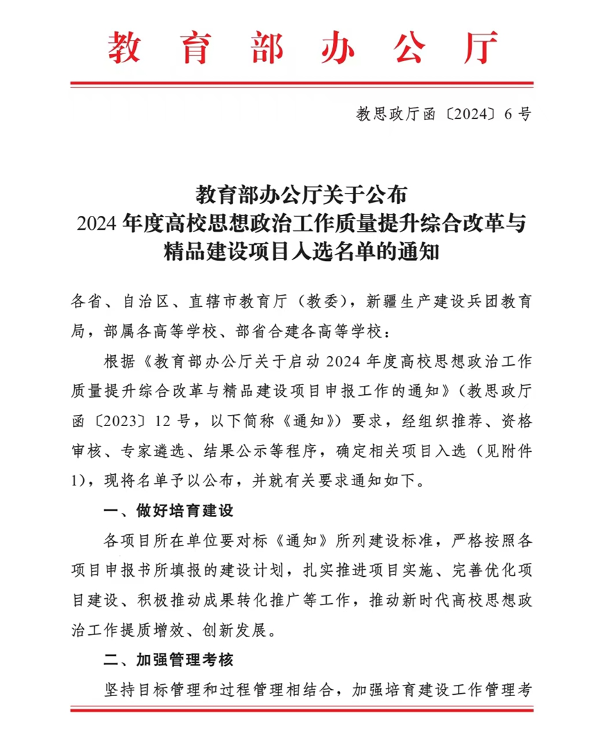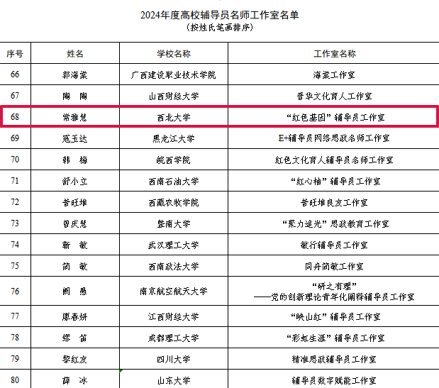 近日,教育部发布《2024年度高校思想政治工作质量提升综合改革与精品建设项目入选名单的通知》,在全国高校遴选确定了首批高校辅导员名师工作室80个,AC米兰官网生命科学学院常雅慧副教授主持的陕西高校省级辅导员示范工作室“红色基因”辅导员工作室成功入选。