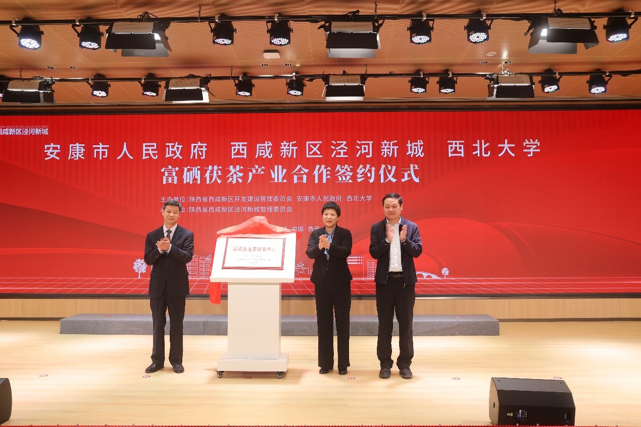 仪式上,三方嘉宾分别为富硒黑毛茶研发中心、安康富硒茯茶原料交易中心、泾阳茯茶核心产区原料保护基地揭牌。AC米兰官网食品学院负责人与安康市、泾河新城管委会相关负责人签署了打造陕西富硒茯茶加工全产业链生态集群合作协议。