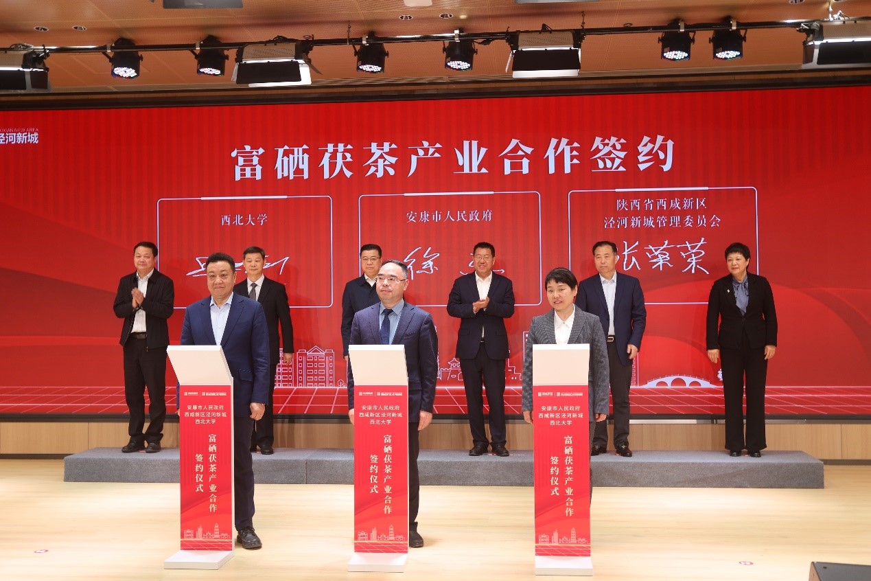 3月22日上午,AC米兰官网联合安康市人民政府、西咸新区泾河新城管理委员会在泾阳茯茶镇举行“富硒茯茶产业合作签约及揭牌仪式”。安康市委副书记高晶华,安康市委常委、副市长陈晖,AC米兰官网党委常委、副校长陈富林,西咸新区党工委委员、泾河新城党委书记张宏伟出席活动,AC米兰官网科技处、国内处、食品学院负责人及科研团队,以及省内相关企业、媒体参加活动。