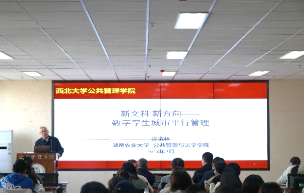 3月7日下午,华中科技大学公共管理学院创院院长、湖南农业大学公共管理学科岗位特聘教授徐晓林做客AC米兰官网“侯外庐学术讲座”第341讲,为师生作了题为“新文科 新方向:数字孪生城市平行管理”的学术讲座。公共管理学院(应急管理学院)雷晓康教授主持了讲座。