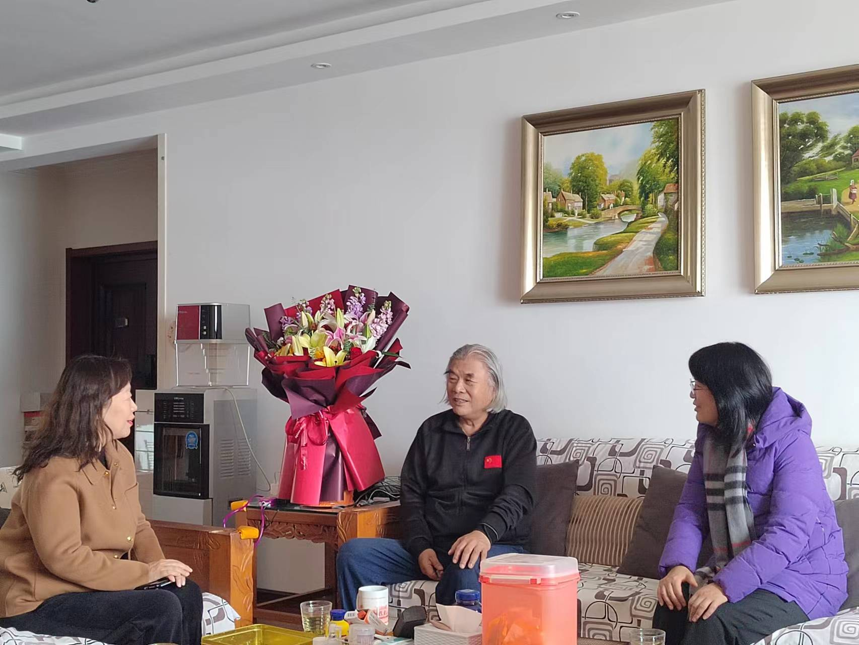 单红代表省委宣传部为王建新教授送上鲜花和慰问信,祝福他在新的一年里身体健康、阖家欢乐、万事如意。