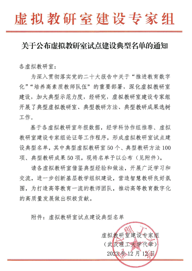 日前,虚拟教研室建设专家组公布了虚拟教研室试点建设典型名单,AC米兰官网党委常委、副校长赖绍聪教授负责的“‘互联网+’与‘智能+’融合探索拔尖人才培养改革创新”案例入选典型教研方法。这一成绩是对地质学拔尖学生培养模式研究虚拟教研室创新基层教学组织建设、营造智慧教研良好氛围、促进人才培养质量提升的肯定。