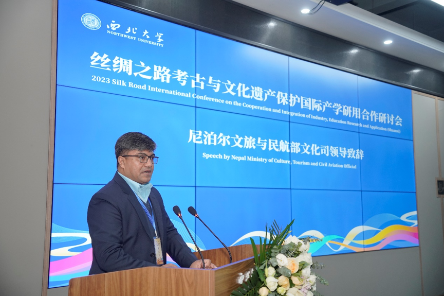 苏雷什·苏拉斯·什雷斯塔作为外方代表发言,简述了尼泊尔在丝绸之路考古发掘工作方面做出的努力,表示期待与中方开展国际联合考古工作,在文化遗产保护与传承领域围绕科学研究、人才培养、文明交往等开展进一步合作,共同促进交流互鉴。