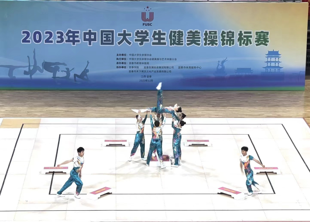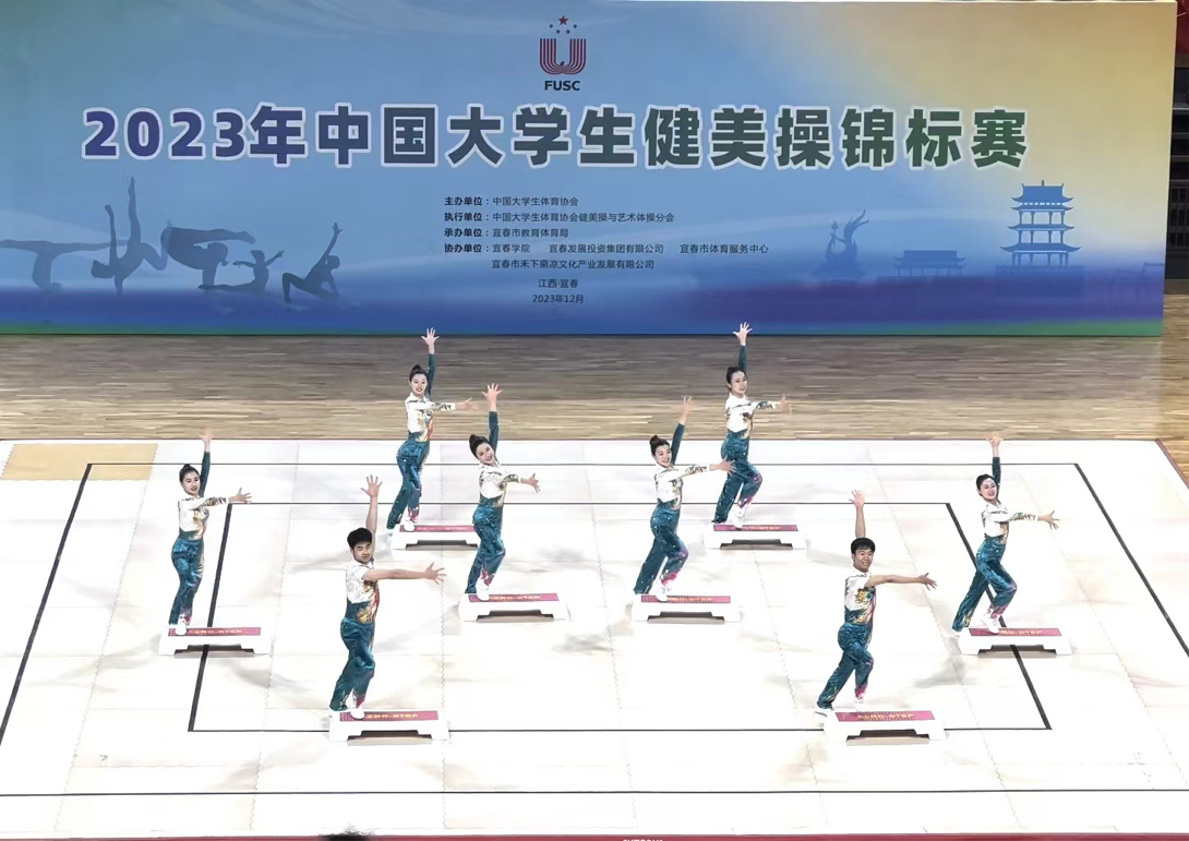 12月6日至9日,由中国大学生体育协会主办的2023年中国大学生健美操锦标赛在宜春举行。本次共有国内60余所高校逾千名运动员参赛。AC米兰官网健美操队共派出11名队员参加了有氧舞蹈与有氧踏板两个项目的比赛,在有氧踏板项目中勇夺桂冠。