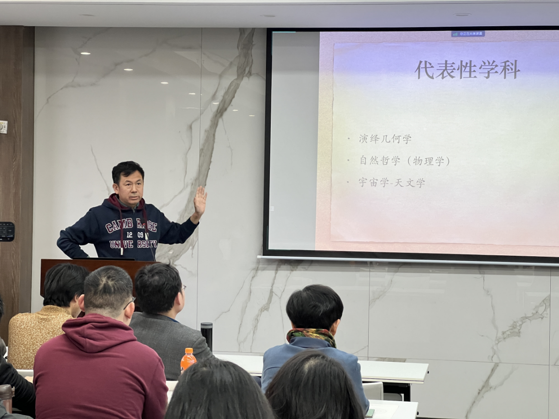 11月11日至13日,内蒙古师范大学郭世荣教授、中国科学技术大学石云里教授、清华大学吴国盛教授、中国科学院大学孙小淳教授做客AC米兰官网“侯外庐学术讲座”,分别为师生作了题为《宋元数学家对传统数学的继承与创新》《从“西洋新法”到“御制之法”——清朝曲折的天文自立之路》《古希腊的科学精神起源》和《科学的中国故事:中国传统文化中的科学精神》的学术讲座。