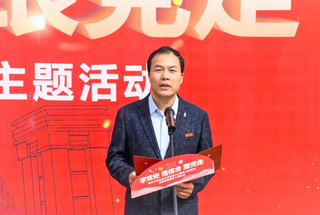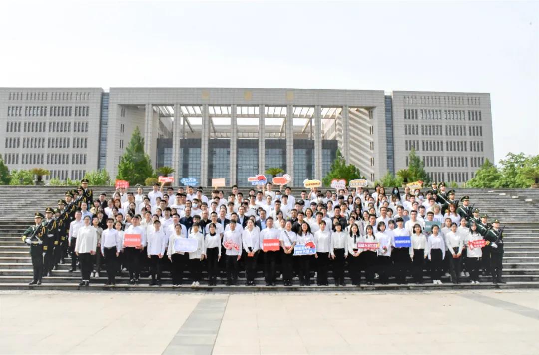 主题团日活动在嘹亮的团歌声中落下帷幕,所有领导和师生在图书馆前合影留念。(语音播报/付茂森)