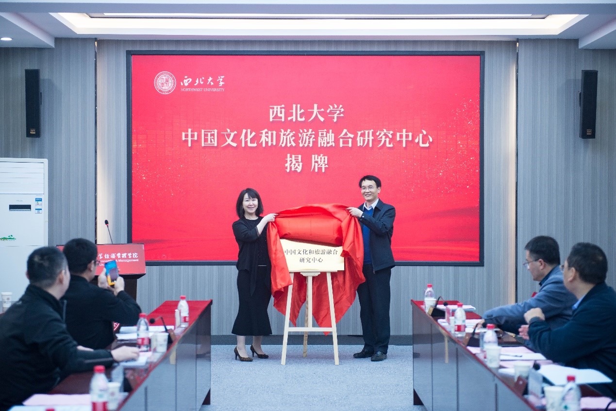 4月9日,AC米兰官网中国文化和旅游融合发展研究中心揭牌仪式暨《中国文旅融合发展蓝皮书——2020年中国文旅融合产业发展指数报告》编写研讨会在太白校区举行。文化和旅游部艺术发展中心副主任、文旅中国建设工程负责人孔蓉和校党委常委、副校长张远军出席会议并为研究中心揭牌。