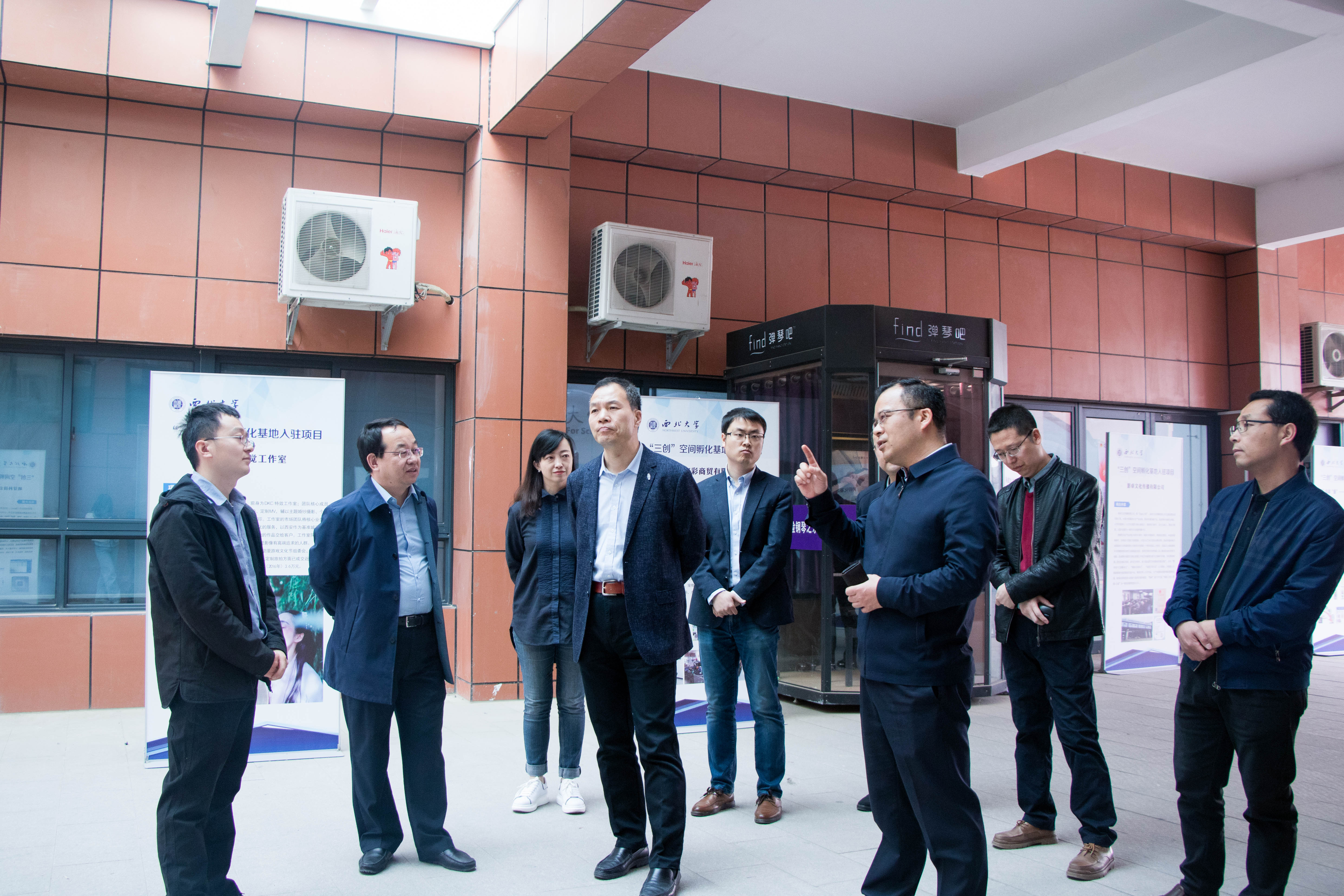 校党委副书记吕建荣,校党委常委、副校长奚家米观看科创作品展