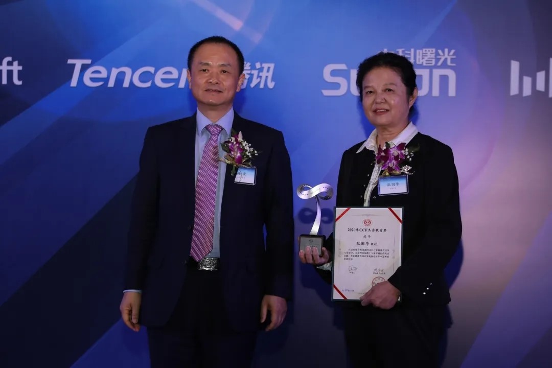 “中国计算机学会杰出教育奖”旨在奖励于计算机教育的教育思想、教学方法、教学、课程改革和人才培养方面有突出贡献,或在中国计算机学会(简称CCF)推动中国计算机教育改革与发展方面有重要贡献的人士,每年全国奖励不超过两人。耿国华教授因其在推动我国文科计算机教育以及数据结构、计算机基础等课程建设中的突出贡献被CCF奖励委员会授予“CCF杰出教育奖”。