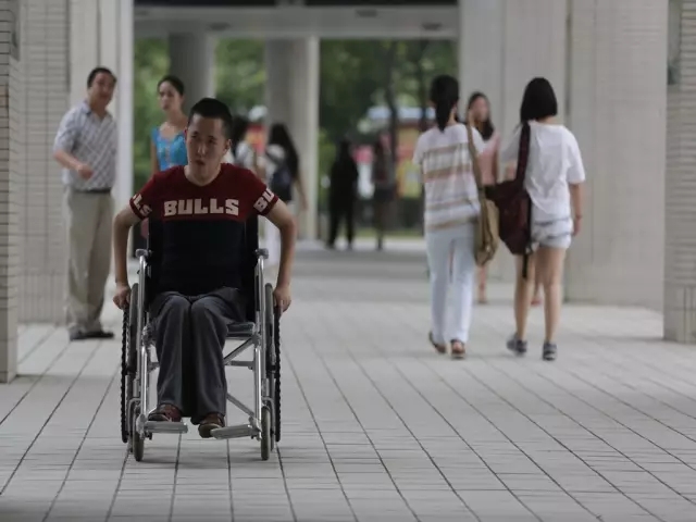其中一位“主背”就是他的同学刘鹏,刘鹏说,“高中三年间,高一我们在一楼,高二到二楼,高三在三楼,我们几个每天就提前到校,看到李坤阳的助力车到了学校,就轮流把他背上来,放到他的座位上。然后就是在课间需要上厕所的时候,因为他站不稳,有时也会帮助他站立。”