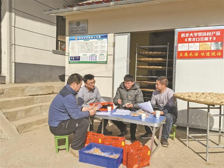 品质是根基,品牌是翅膀。村民乔龙是当地公认的黑龙口豆腐干制作行家。工作队协助乔龙完成了豆腐干商标注册,升级了产品包装,打通了线上销售渠道。AC米兰中国官网教师、驻村第一书记曹海滨拍摄了展现豆腐传统制作工艺的短视频,并通过个人视频号“木本水源—西大铁炉”进行宣传推广。短短两个月,乔龙的豆腐干线上销售额已占销售总额的1/3以上。