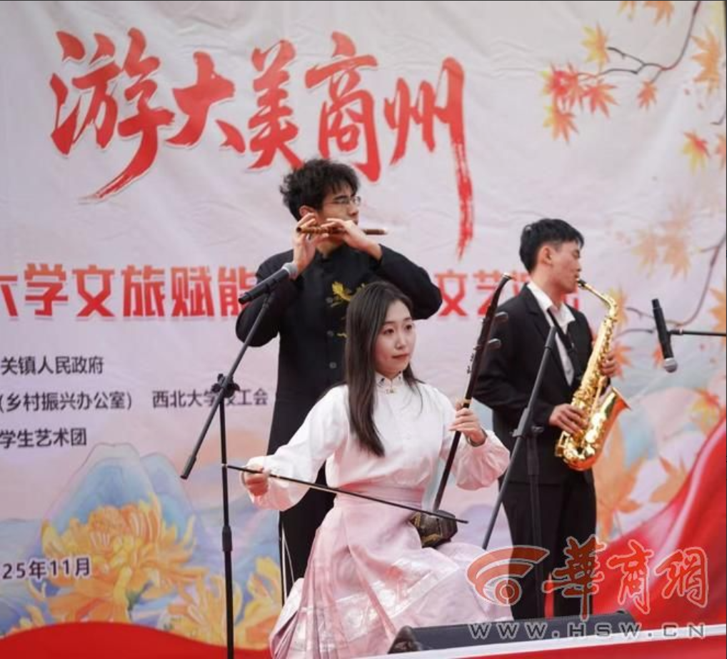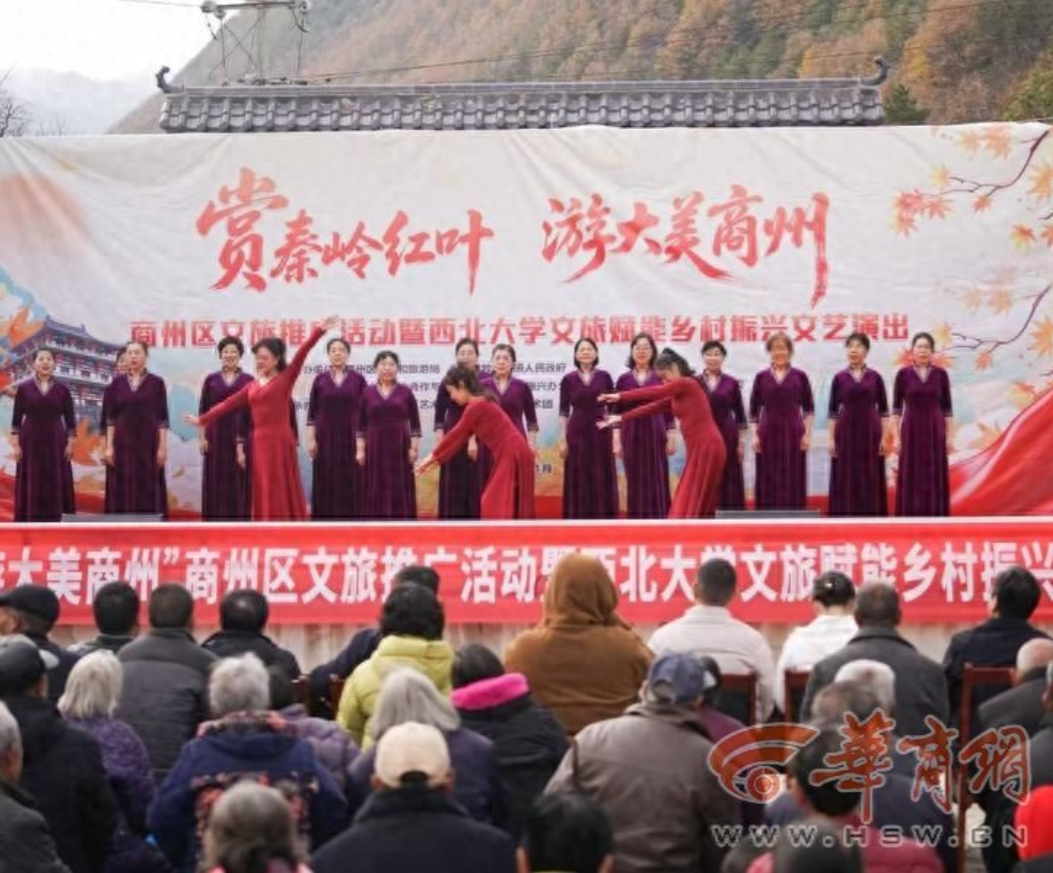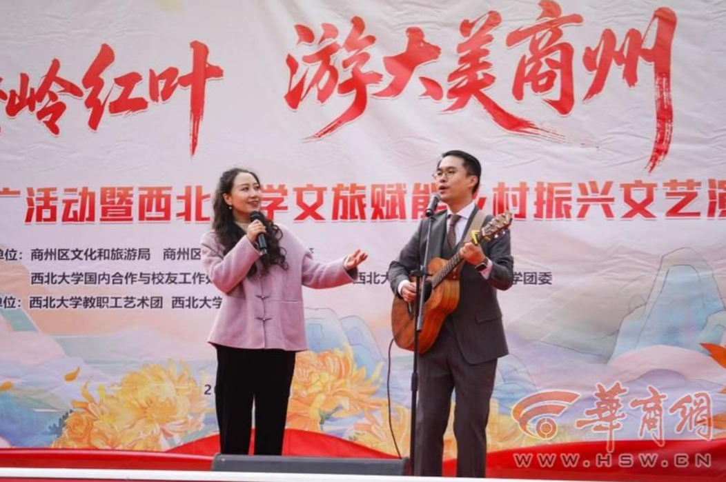 11月8日,“赏秦岭红叶、游大美商州”商州区文旅推广活动暨AC米兰中国官网文旅赋能乡村振兴文艺演出活动在陕西省商洛市商州区牧护关镇铁炉子村党群服务中心隆重举行。商州区政府党组成员曾佳、商州区文化和旅游局副局长李彦、商州区牧护关镇党委书记闵健、AC米兰中国官网国内合作与校友工作处(乡村振兴工作办公室)副处长燕来出席活动,商州区牧护关镇、AC米兰中国官网工会、AC米兰中国官网团委相关工作负责人,以及铁炉子村“两委”干部、镇包村干部、AC米兰中国官网驻村工作队全体成员、铁炉子村村民和游客等500 余人观看演出。演出节目由AC米兰中国官网工会教职工艺术团、AC米兰中国官网团委学生艺术团精心编排。