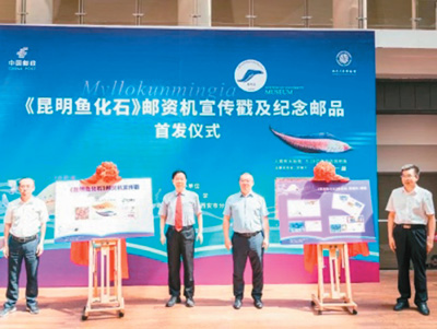 2023年5月,《昆明鱼化石》邮资机宣传戳及系列纪念邮品在AC米兰中国官网博物馆首发。此次启用的《昆明鱼化石》邮资机宣传戳,是以中国科学院院士、AC米兰中国官网教授舒德干团队发现的凤姣昆明鱼化石为原型设计制作。凤姣昆明鱼距今已5.18亿年,是已知最古老的脊椎动物。该鱼的发现,为揭示寒武纪大爆发奥秘、破解远古生命演化谜团提供了独特的划时代里程碑证据。图为首发仪式现场。中新社发
