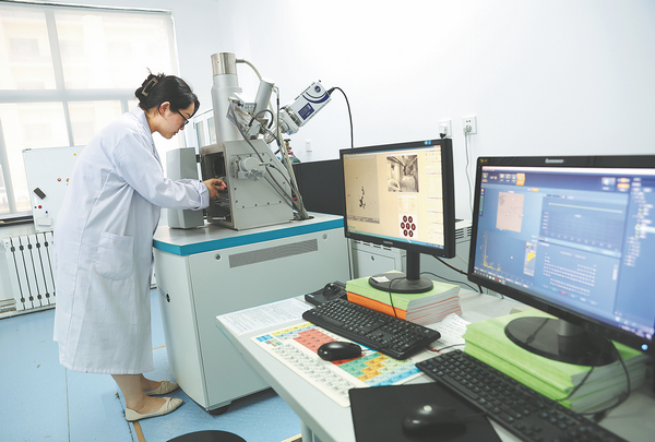 A lab researcher at the university works on technology to protect the relics along the Silk Road. ZOU HONG/CHINA DAILY