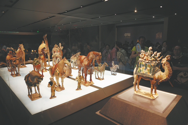 Silk Road-themed pottery artifacts on show at the Shaanxi History Museum. ZOU HONG/CHINA DAILY