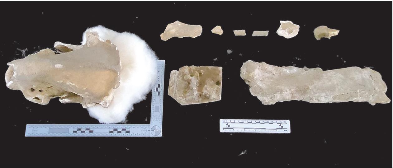 “肱骨、股骨、脊椎、肋骨等大熊猫头后骨骼保存较为完好。”采集现场,省古生物化石专家委员会委员胡松梅对大熊猫骨骼化石进行了初步鉴定。