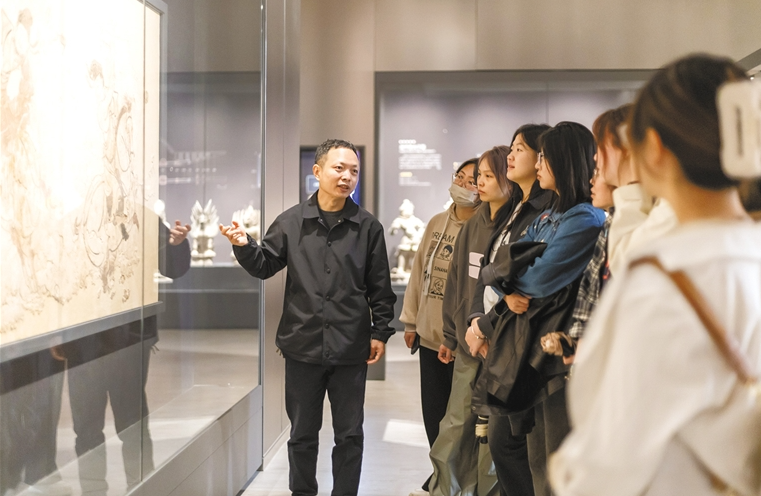王江鹏:随着教学研究的深入开展,我们会加强对文化遗产的传承创新。在教学研究中,我们将进一步加强产教融合,构建新型交叉学科人才培养体系,搭建艺术创作、创造性想象、艺术理论、考古、艺术复原修复、科技保护、作品鉴赏、全媒体艺术有机融合的平台,深入挖掘古代壁画遗产中蕴含的文化艺术“密码”,实现古代壁画的当代价值。