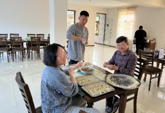 中亚考古队队员与当地民众一起包饺子