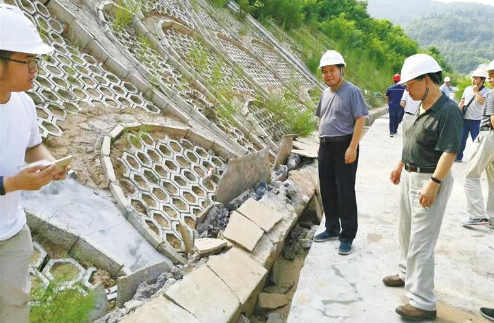 王家鼎到现场反复勘测后,将目光锁定在一处山沟。为寻找“症结”所在,王家鼎在腰间绑上安全绳,沿着陡峭的崖壁下到40多米深的谷底。凭着独到的经验,在刺骨的寒风中,他终于找到了滑动面。