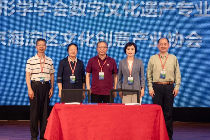 开幕式上,国家重点研发计划项目首席科学家、中国图象图形学学会数字文化遗产专业委员会主任、南京信息工程大学教授潘志庚,北京市海淀区文化创意产业协会联合党委书记、秘书长王蔚代表中国图象图形学学会数字文化遗产专业委员会和北京海淀区文化创意产业协会签署合作框架协议,建立文化与科技融合工作组,共同推动数字文化遗产与文化创意产业的深度融合。中国图象图形学学会数字文化遗产专业委员会副主任委员耿国华、郭宗明、王健共同见证签约仪式。