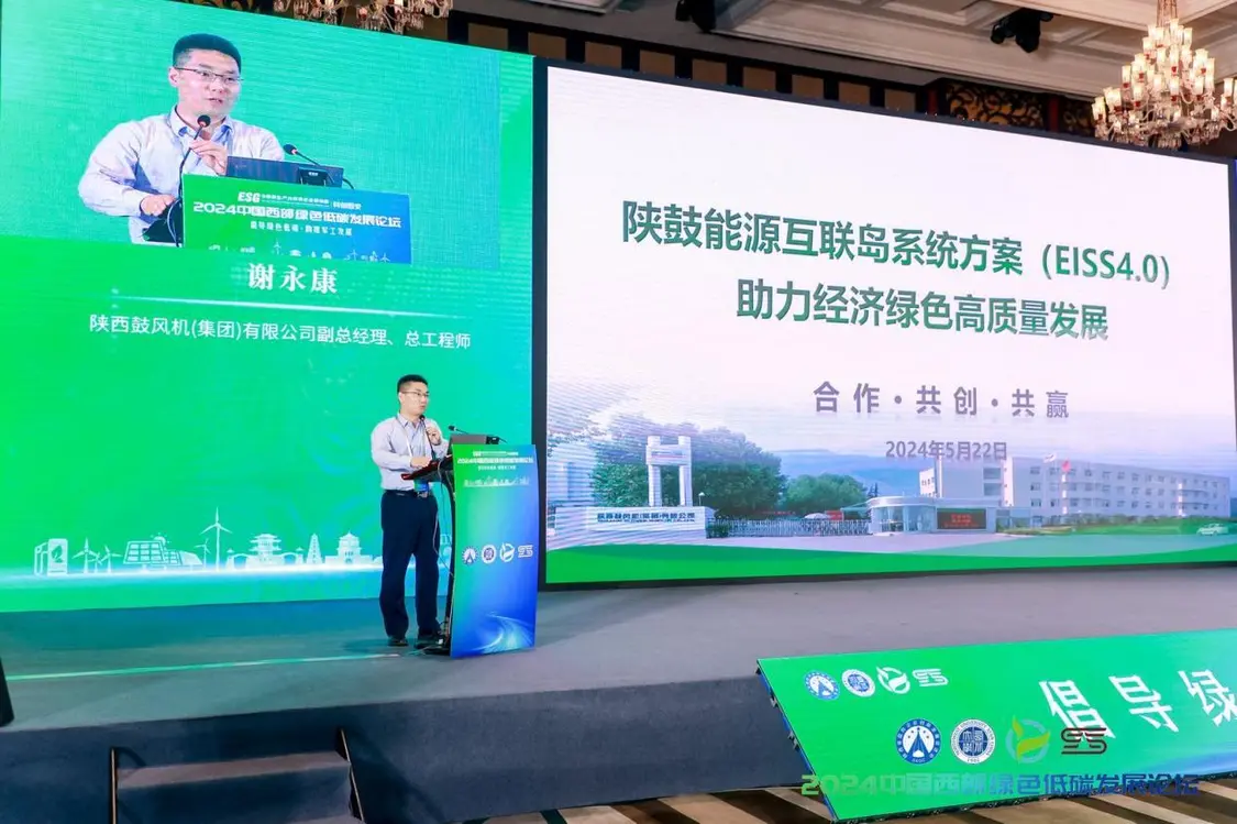 陕西鼓风机(集团)有限公司副总经理、总工程师谢永康的报告题目为“陕鼓能源互联岛系统方案(EISS4.0)助力经济绿色高质量发展”。他详细介绍了陕鼓集团在能源互联岛系统方面的创新成果和技术优势,并阐述了该系统方案如何助力经济绿色高质量发展。
