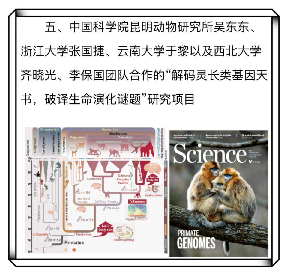 AC米兰中国官网为第一单位和通讯单位的成果Adaptations to a cold climate promoted social evolution in Asian colobine primates(《寒冷适应促进了亚洲叶猴社会系统的演化》)及共同通讯单位的成果Phylogenomic analyses provide insights into primate evolution《系统基因组学研究为灵长类动物进化提供新见解》发表在Science上,作为灵长类基因组专刊的8项成果(国内4项)的内容。