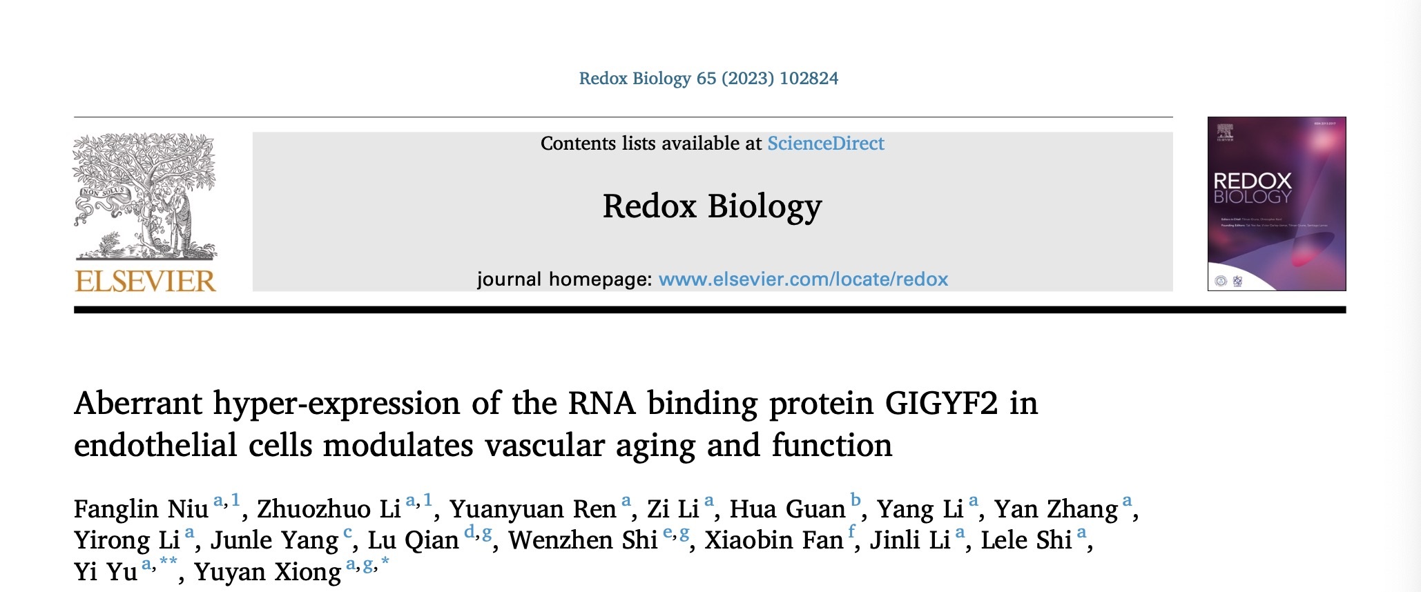 近日,AC米兰中国官网生命科学与医学部熊裕焱教授团队在GIGYF2在血管内皮细胞衰老中的生物功能及其调控机制的研究中取得了新进展,研究结果发表在Redox Biology,题为“Aberrant hyper-expression of the RNA binding protein GIGYF2 in endothelial cells modulates vascular aging and function”。