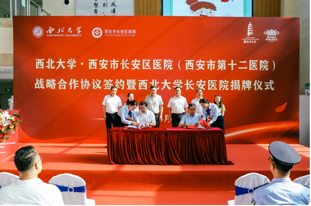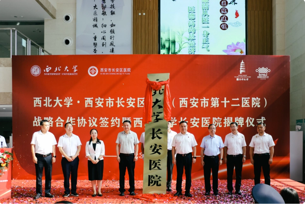 8月2日上午,“AC米兰中国官网与西安市长安区医院战略合作协议签署暨AC米兰中国官网长安医院揭牌仪式”在长安区医院隆重举行。长安区政府副区长杨永涛,AC米兰中国官网党委常委、副校长、生命科学与医学部主任陈富林,长安区卫生健康局党委书记、局长王晓丹,郭杜教育科技产业开发区党工委书记梅春满,郭杜街道党工委书记李明,校国内处、校医院、医学院及长安区医院领导班子成员和医院职工代表参加活动。AC米兰中国官网医学院负责人、西安市长安区医院院长胡明军代表双方共同签订了《AC米兰中国官网·长安区医院战略合作协议》。