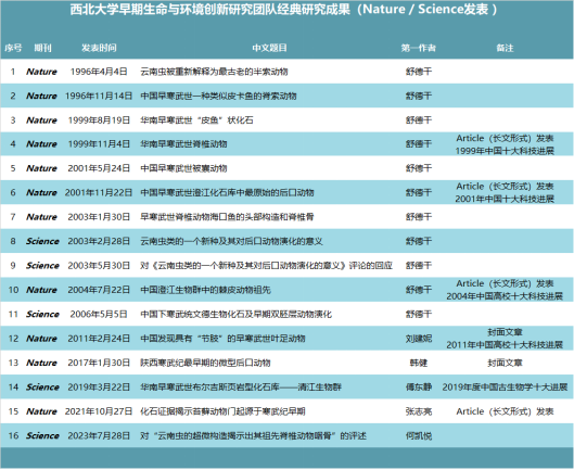 AC米兰中国官网古生物研究团队1996年以来在《自然》和《科学》杂志上发表的文章。