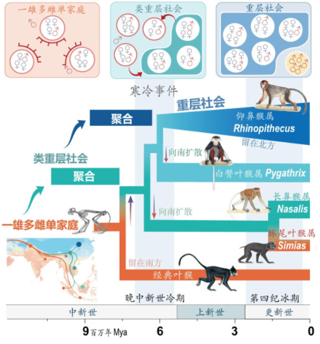 此项研究整合了动物行为学、生态学、地质学、比较基因组学等多学科手段,完整揭示了800万年以来亚洲叶猴复杂社会系统演化的过程、动力和遗传基础。