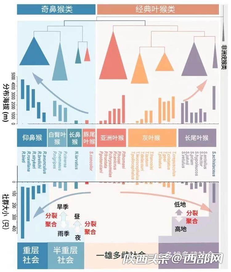 亚洲叶猴类各属的系统发育关系、分布海拔与社会结构