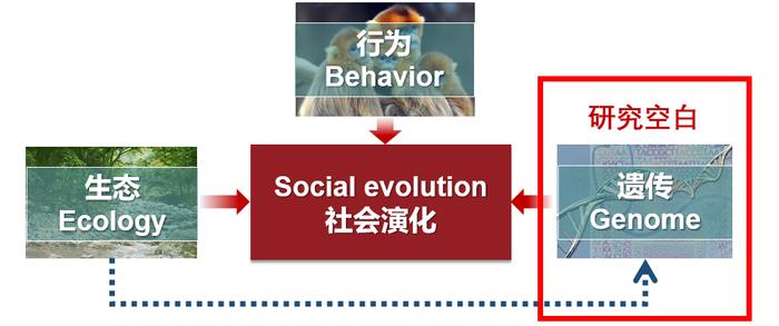 通过比较基因组学的方法,结合系统发育分析检测的结果显示,历史上的寒冷事件促进了亚洲叶猴的能量代谢和神经-激素调节相关基因受到正选择,演化出了更加有效的脑、神经-激素调控网络,其中在奇鼻猴类群中与催产素、多巴胺递质系统有关的基因改变格外引人注目:其类群的社会呈现两步式的逐步聚合模式,从祖先的“一夫多妻”到形成具有分离-聚合特征的类重层社会,再演化出“家庭”长期生活在一起的大型重层社会。