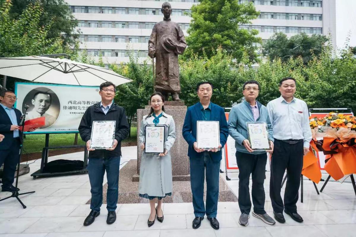 西北联大与大学文化研究院院长姚远为与会嘉宾和师生阐释了雕像碑文,二百余字浓缩了徐诵明先生波澜壮阔的人生和重要的成就。