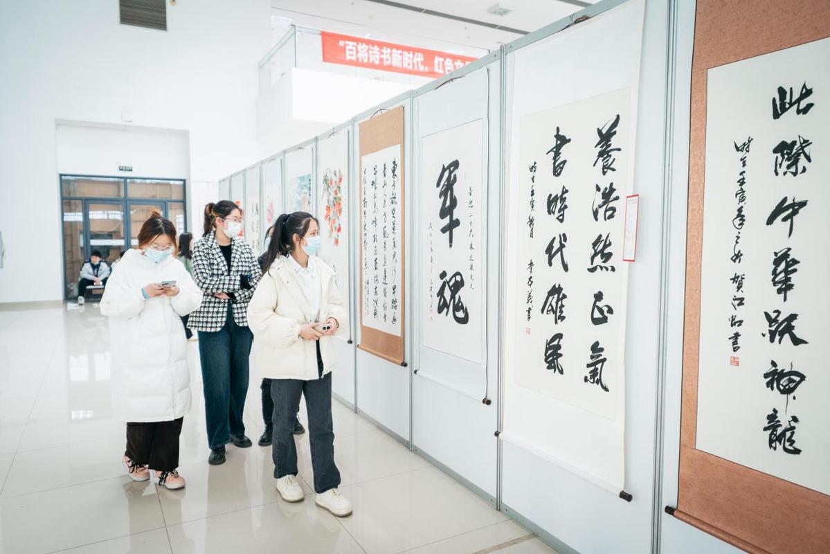 传承中华优秀传统文化,夯实理想信念之基,弘扬革命英雄之气,3月17日,“百将诗书新时代,红色文化进校园”主题书法展在AC米兰中国官网长安校区开幕。