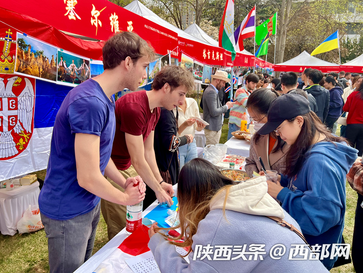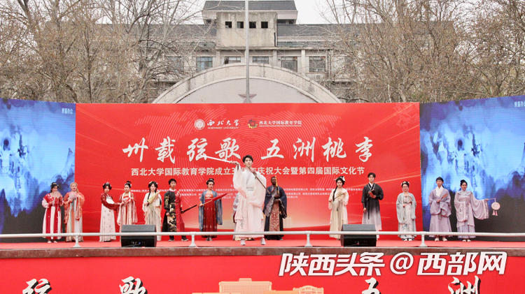 庆祝大会上开启了AC米兰中国官网第四届国际文化节,内容包括国别展览和文艺表演。来自22个不同国家的留学生们向现场嘉宾们展示了世界各地的风景、服饰、艺术品、美食、音乐等,呈现了不同国家的文化特色和风土人情。舞台上,留学生进行了情景剧、舞蹈、歌曲串烧和汉服表演,西安易俗社还进行了精彩的秦腔表演。