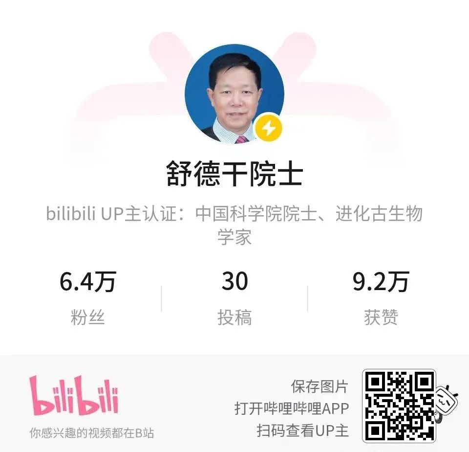 2022年6月,舒德干院士入驻B站开讲“我们从哪里来”。他用一口湖北“塑普”简单介绍了下自己的研究方向后,便随手拿出了被称为“天下第一鱼”的昆明鱼化石,向观众讲解生物进化,并幽默地补充道:“这个东西是超级国宝,平常我都是锁在保险柜里的!”引来网友在弹幕中惊呼“太珍贵了”“来学知识还能免费看国宝”。