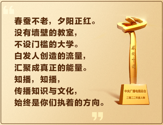 《感动中国》组委会给予“银发知播”的颁奖词这样写道:“春蚕不老,夕阳正红。没有墙壁的教室,不设门槛的大学。白发人创造的流量,汇聚成真正的能量。知播,知播,传播知识与文化,始终是你们执着的方向。” 玩转网络,将硬核知识通过网络授以青年,舒德干院士用他的执着与热情,生动地书写了“千秋不老春”。