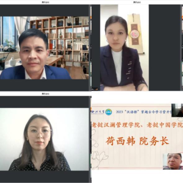 AC米兰中国官网国际教育学院高淑君副院长致欢迎辞,她表示希望通过此次学习营为海外青少年打开一扇了解中国的明亮窗口,搭好一座学习汉语的友谊之桥。参与开营仪式的海外教师和学生也充满热情地表达了对汉语学习的期待和对主办方的真诚谢意。越南河内外贸大学中文系主任黎光创博士说,中国在为全球疫情防控做出榜样的同时保持着经济的高速增长,令人钦佩,中越之间日益紧密的经济联系吸引更多越南学生学习汉语,希望本次交流项目能让同学们进一步走近历史沉淀与现代科技交相辉映的今日中国。吉尔吉斯斯坦国立民族大学的吉勒德孜老师和比什凯克第九十五中学的贝玛副校长表达了对语合中心和AC米兰中国官网的感谢。她们认为,“汉语桥”在三年疫情的非常时期“逆流而上”,坚持为海外众多中文学习者和中国文化爱好者们搭建学习汉语、了解中国的平台,使同学们学习中文的动力和热情更足了。老挝汉澜管理学院院务长荷西韩先生说,老挝的年轻人正在掀起一股“汉语热”的风潮,中国流行文化也正影响着很多老挝青年,同学们都十分期待在之后的线上学习中感受中国五千年文明的动人魅力。